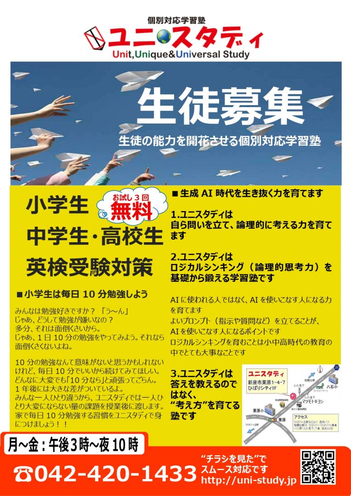 3.ユニスタディは、答えを教えるのではなく、“考え方”を育てる塾です